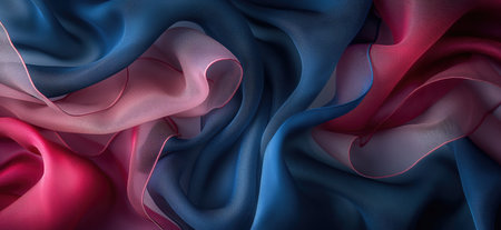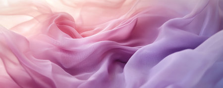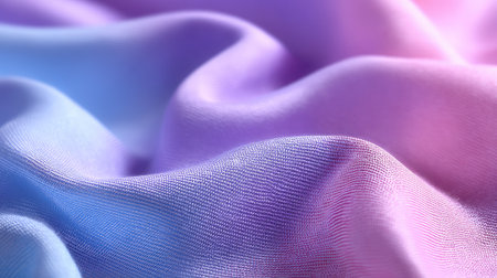 This close-up image features a soft gradient fabric in shades of pink and blue, showcasing delicate textures and gentle waves, ideal for creative background designs.