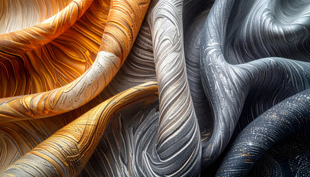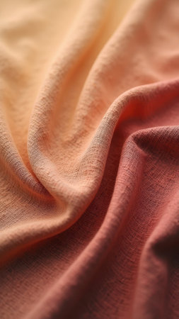 Close-up of soft gradient fabric in warm tones creating elegant textural waves. That the image is generated using AI.