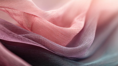 This close-up photograph showcases the delicate beauty of softly flowing fabric in gradient shades of pink, lavender, and gray. Ideal for artistic concepts.