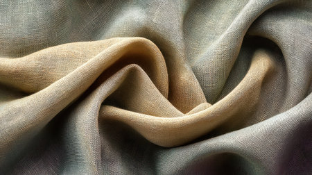 A captivating close-up image of textured fabric showcasing gentle drapes in natural earth tones, ideal for backgrounds, fashion design, and artistic projects.