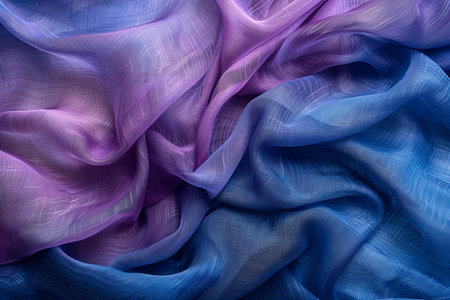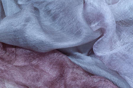 Texture, background, pattern. Silk fabric is transparent, blue, purple. It has a smooth matte finish. Use this luxurious fabric to create your design.