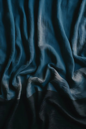 Cinematic view of rich denim fabric texture with deep blue tones and intricate details