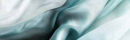 A serene abstract background featuring flowing 3D silk fabric with a gradient from soft gray to icy blue. The fabric waves create a calming, tranquil effect.