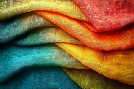 Vibrant and Artistic Background Featuring Wavy Rainbow Folds and Colorful Textile Texture Design