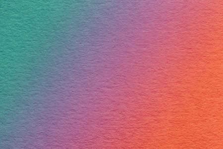 Texture of old dark green purple, and orange paper background, with holographic gradient, macro. Structure of craft red cardboard with spectrum. Felt backdrop closeup.