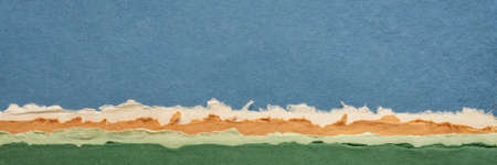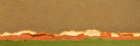 abstract landscape in brown, orange and green pastel tones - a collection of colorful handmade Indian papers produced from recycled cotton fabric, panoramic web banner