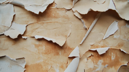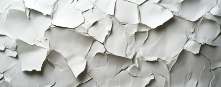Shabby and messy crumpled and torn poster paper texture as graphic design element background, white paper scraps glued to a wall