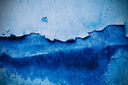 Vibrant textured wall with peeling red and blue paint for artistic use