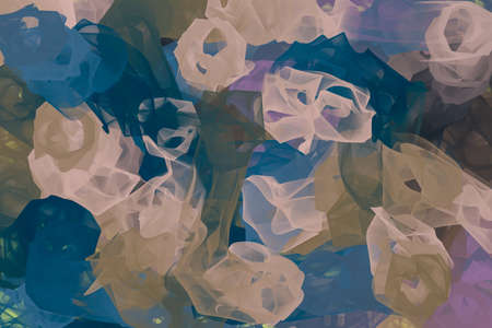 Green and purple background, single use plastic bags. Concepts: sustainability, recycling, pollution.