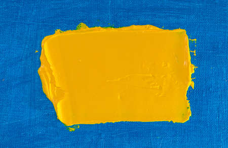 abstract bright color background: flat wide spot of yellow paint on blue fabric