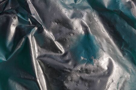 Texture of the old crumpled garbage bag. Copy space. Abstract background. Environmental pollution and conservation concept