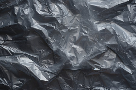 Dark crumpled plastic surface with glossy folds, abstract texture background for industrial, grunge, dramatic and modern design concepts