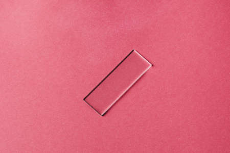 Laboratory glass on a pink background for research in the field of medicine, cosmetology and biology. Research and development concept.
