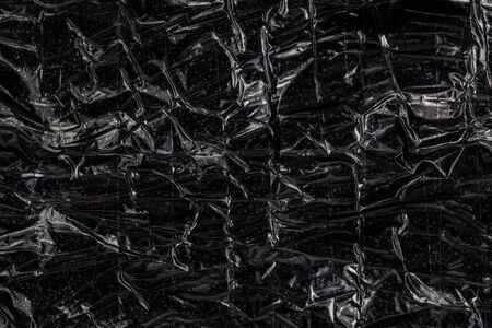 black polyethilene film enforced by sticky tape flat smuggle package closeup texture