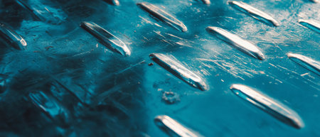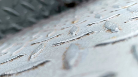 Deep texture of diamond plate aluminum reflecting light in industrial setting
