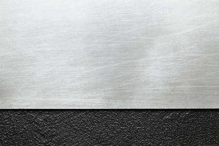 Metal background or texture of brushed steel plate with reflections Iron plate.