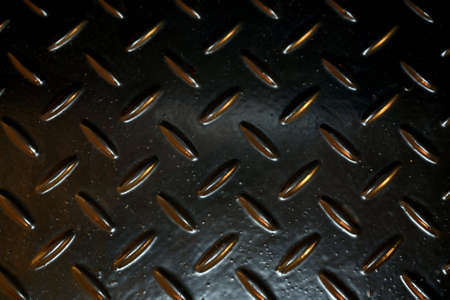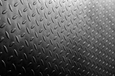 Advertising shot of checkered black steel texture. Metal sheet with artificial bumps, close-up. High quality photo