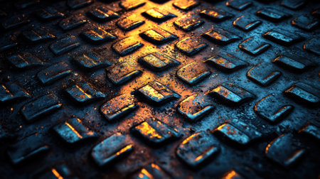 This image showcases a close-up of a textured metal surface featuring a diamond pattern, ideal for industrial backgrounds or design elements. The light reflects off its shiny finish, adding a modern aesthetic.