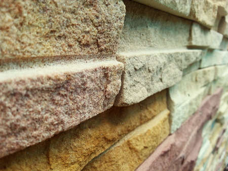 Diagonally aligned earthy-toned stone bricks with rugged textures, set against a soft-focused backdrop highlighting diverse building materials for creative projects.