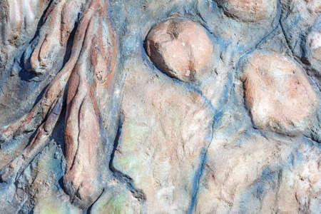 Textured mud wall with rocks and dark surfaces for natural design elements