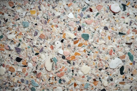 Abstract seamless terrazzo texture with a pale yellow cement base and mixed natural stone fragments