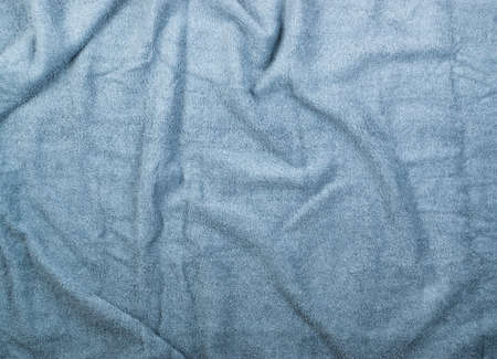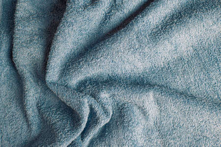 Fluffy Gentle baby blue fabric. Soft pastel textile texture. Folds on the soft fabric. Blue towel terry cloth.