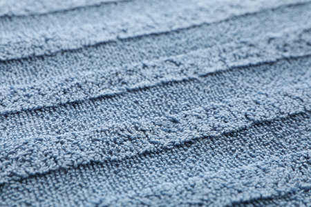 Blue towel textured background, close up and space for text