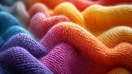 Vibrant Colorful Towels on Blue Background Bright, Soft, and Absorbent Beach or Bath Linens for Summer Fun and Everyday Use AI Generative