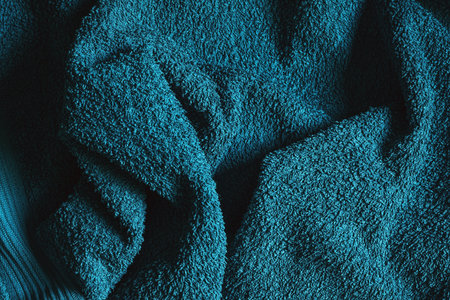 Blue towel fabric texture surface close up background