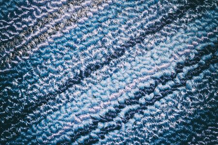 Blue delicate soft background of fur plush smooth fabric. Texture of fleecy blanket textile. Faux fur textile background. Selective focus.