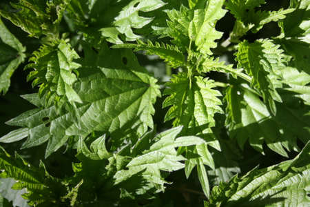 stinging nettles (Urtica) with fresh green leaves in the sunlight