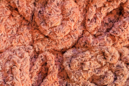 Pink fluffy abstract texture background with copy space. Fabric pattern backdrop, macro.