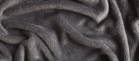 Gray wrinkled plush fabric background texture, soft material pattern. banner