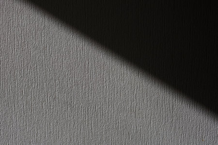 Soft light casts a sharp shadow on a textured wall creating an intriguing contrast of light and dark. This scene captures the beauty of simple design in a quiet indoor space emphasizing texture.