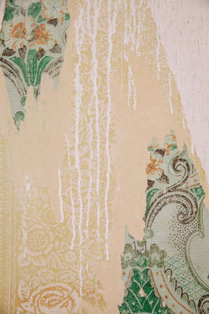 Vintage, old wallpaper, dripping paint, layers of different colorful paper backgrounds.