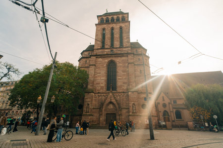 Strasbourg, France - 1 Oct 2025 Saint Peter the Younger church, Gothic style, city of Strasbourg, Bas Rhin department, France