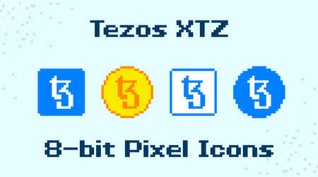 Tezos pixel art icon set. 8-bit XTZ crypto assets in vector format