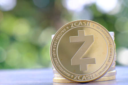 Z cash coin on a dark background close up