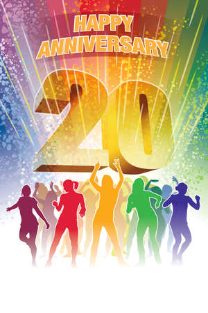 Colorful crowd of dancing people celebrating twentieth anniversary