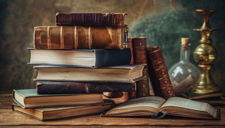 Stack of antique books on a table