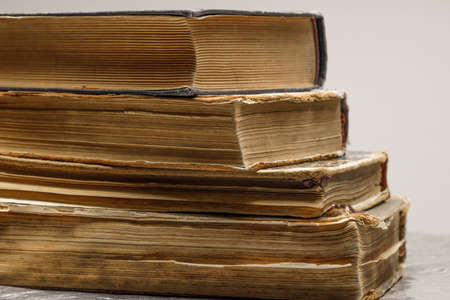a few old and worn books together close-up