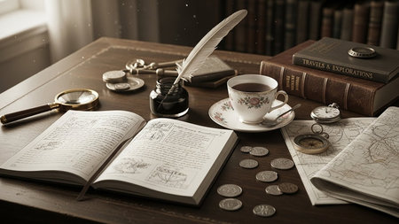 In the quiet hush of a library's hidden corner, a scholar pores over a fragile, handwritten manuscript.