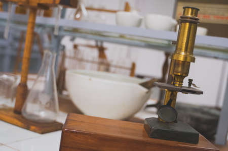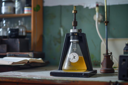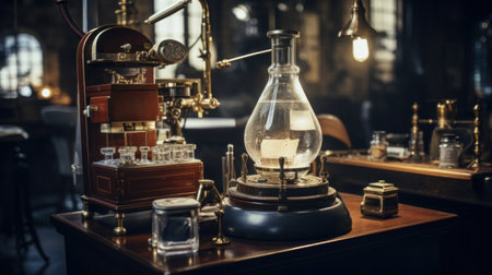 A closeup shot of a vintage chemistry lab equipment on a desk