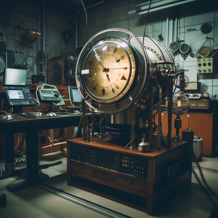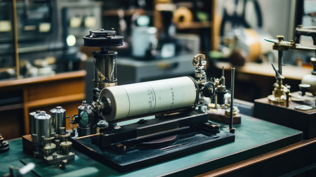 A vintage analytical instrument showcasing a paper cylinder in an authentic historical workshop setting. Perfect for themes of innovation and nostalgia.