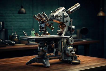 Detailed Scientists research microscope. Clinic equipment. Generate Ai