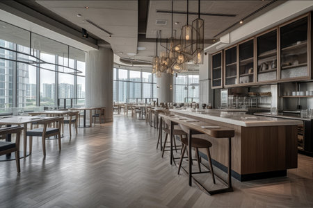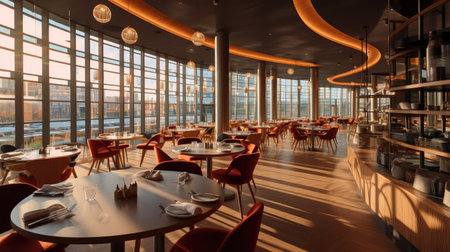 Generative AI Modern restaurant interior, part of a hotel