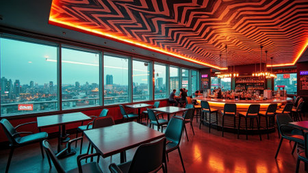 chic and trendy rooftop bar with stunning views of the ci one. This image is created with AI.