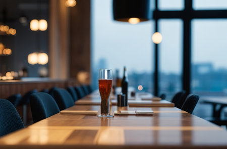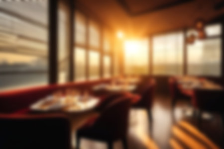 Desk with Stunning Blurred Restaurant Background: A Top Choice. Generative AI.