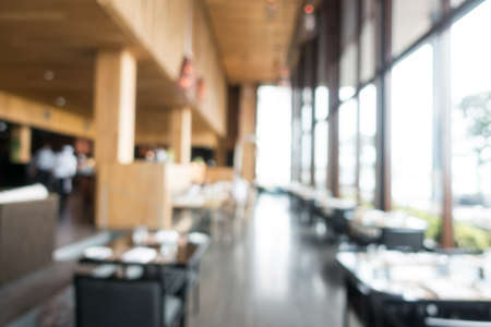Abstract blur and defocused buffet restaurant and coffee shop cafe interior for background