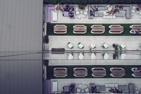 London, UK - June 20, 2019: Business people relaxing on the roof top in the City of London.